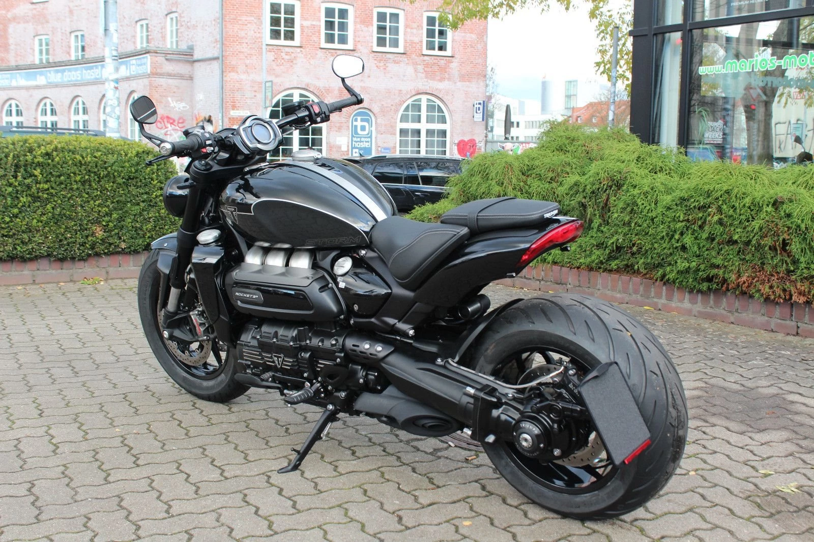 Wer ein leichtfüßiges kleines Stadtmotorrad sucht, wird wohl bei der Rocket 3 Storm nicht fündig werden. Wer aber ein sportlich fahrbares Muscle Bike mit einem Hammermotor sucht, der neben der Leistung noch eine mustergültige Laufkultur bereitstellt, der ist hier genau richtig. Dadurch ist nicht nur für den mächtigen Auftritt vor der Eisdiele gesorgt, sondern auch für den Fahrspaß auf dem Weg dorthin, auch wenn dieser durch kurvige Bergstraßen führt!